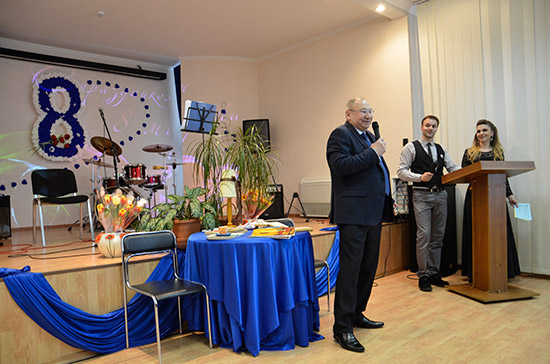 Традиційно до жінок у залі звернувся зі святковим привітанням генеральний директор ДП «Укрметртестстандарт» Дмитро Артемович Сабатович.