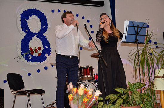О. Трофімова, А. Клімась-Седлярова, С. Сліпенко, К. Карандєєв, С. Шевкун, Д. Ларін, В. Пісчіков, Ю. Рогальський, П. Зозуля, П. Петришин, В. Кравченко та незмінні ведучі свята – В. Гречанюк і В. Довгань. У залі панувала тепла, урочиста атмосфера. Виступи наших артистів супроводжувалися бурними оплесками та гучними оваціями. Жіноча половина підприємства подякувала артистам та побажала нових творчих звершень.